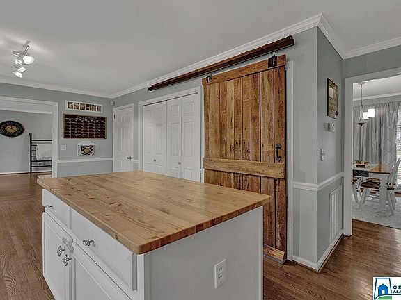 SUPER CUTE IN MEADOWBROOK!! OAK MOUNTAIN SCHOOLS!! You will love this one! Located on great cul-de-sac, it has so many great features! Main level is all hardwoods & has large den w/cozy painted brick fireplace; great kitchen w/stone countertops, stainless appliances, subway-tile backsplash, pantry, island, & really cool barn door for laundry; dining room; & powder room. Upstairs you find a large master bedroom w/walk-in closet; updated master bath w/great glass shower; two more bedrooms; second full bath also updated. Basement has a great finished room that is perfect for a playroom or theater room! Off the kitchen is a large deck perfect for entertaining overlooks a HUGE backyard! This backyard is perfect for so many things..it is fenced and has a cool pea gravel fire pit area that is great for these cool fall evenings! 2-car garage features extra storage. Meadowbrook is SO convenient to schools, shopping, dining, Oak Mountain State Park..what's not to love? Come see today!