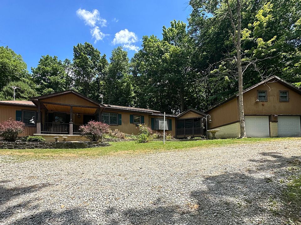 Pending when submitted. This 4-bedroom, 2 full bath, custom quad-level is waiting for your added touches. Home offers separate oversized garages with workshop on top. Set on 3.13 wood acres. Plenty of space inside and out.