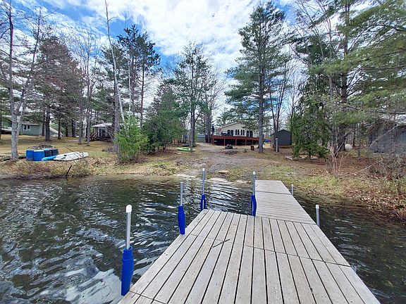 Nice Lakefront home on No Wake Blue Gill Lake. Fantastic views of the lake from the large Living & Dining Rms. The expansive deck w/glass railings allow for uninterrupted views. The deck wraps both the front & side of home. (Built in 2024, approx 15x31). Home has been upgraded from a remodeled kitchen w/quality appliances, Mudroom with a 3 month old W/D. Refinished Hardwood floors, Wainscoting, new water lines & filters. Property has so much to offer w/ a heated garage, currently used as a studio apt complete w/bathrm & shower. Two sheds have been added for work space & storage 12x20 & 10x12. Young fruit trees have been planted. Possibilities are unlimited... Year round home, Up North cabin, Airbnb, you name it. State land adjoins the property, so bring your toys. Dock is in & included.