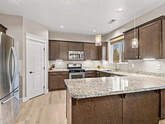 Step into one of Ponderosa Trail's latest listings, tucked away in a secluded corner of the subdivision. This home has 9-foot ceilings, tons of natural light, and a prime location close to trails and the National Forest. Newly installed LVP flooring and baseboards add a fresh touch. Brand-NEW light fixtures throughout. The open concept creates a seamless flow from the kitchen to the dining and living room areas. Enjoy the modern kitchen with granite countertops and stainless-steel appliances. The living room opens up to a fantastic backyard featuring a Trex deck, paver patio, nice trees, and a rear with no neighbors. As one of the newer homes in the area, it stands out as a rare ''gem'' in the neighborhood.
