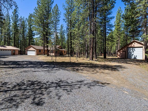 Welcome to your tranquil retreat nestled among the pines, this private 1.4 acre property offers a perfect blend of rustic charm and modern comfort. As you approach, be greeted by the serene ambiance of the surrounding forest, boasting a picturesque setting with towering trees and ample space for outdoor activities. Step inside to discover a well-appointed interior featuring 3 bedroom and 2 bathrooms. The open-concept layout enhances the sense of space, while large windows invite natural light to fill the rooms. Outside, the front deck is perfect for enjoying the fresh mountain air and the spacious yard provides plenty of room for all your favorite hobbies with a second detached garage, RV barn/shop, office/workshop, and several additional outbuildings. Located in the charming community of La Pine, this property offers easy access to outdoor recreation, including hiking, fishing, and skiing. Don't miss your opportunity to own this idyllic retreat in the heart of Central Oregon