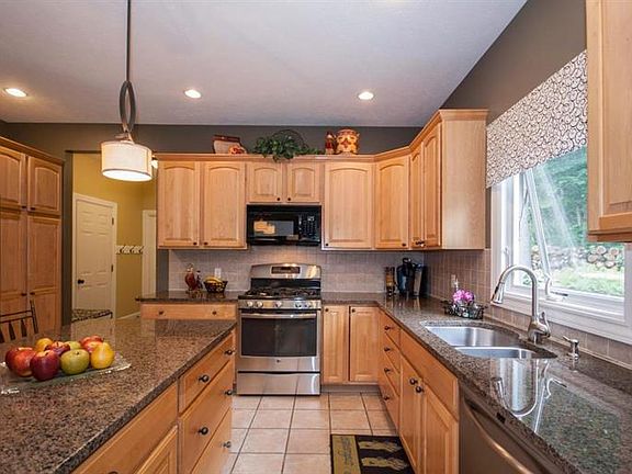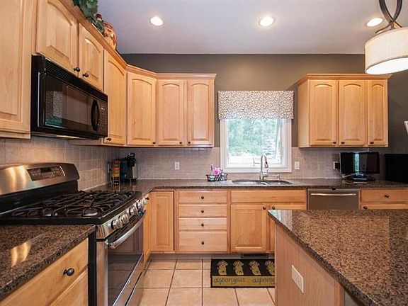 This beautifully maintained home sits on 1.2 acres in exclusive Hunters Ridge.Approximately 3000 square feet of finished living space, features an open floor plan with 4 bedrooms, 3 1/2 baths. This home has a two story great room with fireplace and built-ins, gourmet kitchen with Maple cabinets, granite counter tops, large island, tile/hardwood floors and stainless appliances. Main floor flex room could be for a formal dining or office space. Upstairs has 3 bedrooms, including the master suite with walk-in closet, private bath and jetted tub. Additional 2 bedrooms have a Jack and Jill bath. The daylight lower has a bedroom, family room, game room, wet bar and plenty of storage. Private wooded back yard professionally landscaped