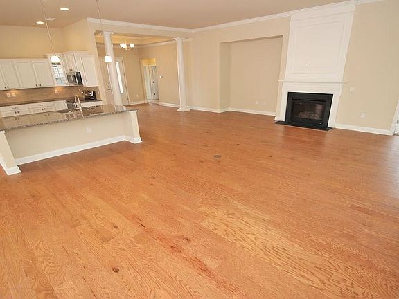 Cumberland floor plan with office, garage ext., and bay window. Wood flooring in main living areas, tile in wet areas, and carpet in bedrooms. Fireplace, full tile shower in master bath, upgraded cabinets, granite, and tile backsplash in kitchen.