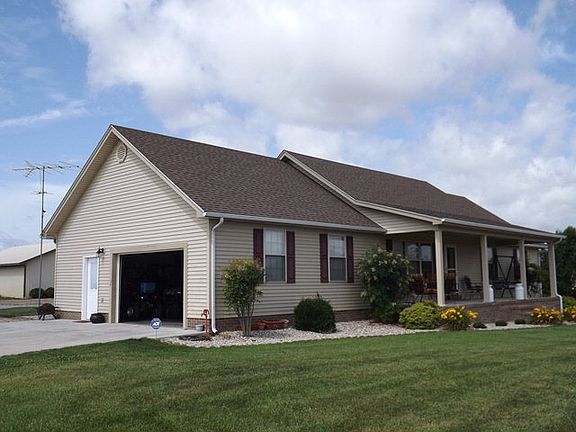 Custom built 4 bdrm, 3 full BA, 2 kitchens, attached garage, walk out & drive in bsmt, on 13.22 fenced ac w/barn. The poured concrete bsmt walls are 12 inch. The exterior main level walls are 2x6. The footers for the patio are you could build an addition rm or sunrm. The electric heat pump is 2-3 years old. New dimensional roof in 13. The bsmt has full bath, kit., living & bdrm area is combined