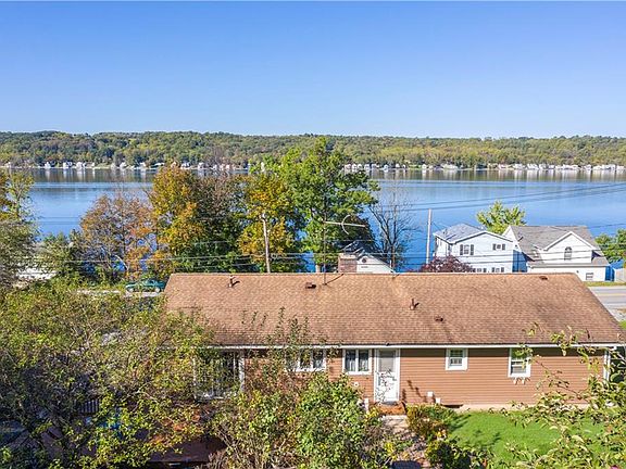 Amazing opportunity to live right across the street from Conesus Lake! Boat launch less than half mile away! Lake Views & spectacular sunsets incl! JANUARY 2020, BRAND NEW METAL ROOF w WARRANTY! (pictures are of old roof) 2412 sq ft, 5 bedrooms, 2 full ba incl a master bath! Eat-in Kitchen w Wood-Mode Cabinetry & door to back patio. 2.5 car heated gar w workshop. Lots of parking & a shed. Large living rm w gas FP & large windows, dining rm w French Doors leading to back deck overlooking beautiful gardens w waterfall. Wrap around front deck w lake & garden views! Family rm w wet bar-ideal for entertaining! New updates incl windows, Entryway Doors, & Rinnai Tankless Water Heater, Carpeting & more! Whole house attic fan to cool home in summer. Boiler has Isaac Gold Program. Nature abounds!