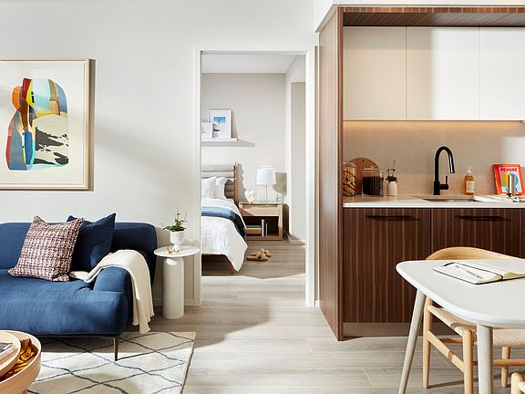 A new landmark Vancouver address, Frame by Coromandel Properties and Peterson Group marks the arrival of a bold, architectural statement. Just a 10 minute walk to the 29th Avenue SkyTrain Station, Frame's is perfectly central between Downtown and Metrotown. The 1-bedroom, 1-bathroom, and 1 Den A4 home is perfect for those looking for their first home or young couple looking for something new. The open kitchen, dining and living space extends towards the west facing balcony. Homeowners will enjoy access to over 12,000 sq ft of indoor and outdoor amenities, including two rooftop patios, entertainment lounge, fitness centre, and parcel delivery rooms. Visit the Frame Presentation Centre located at 2751 Kingsway, Vancouver. Open daily 12:00pm to 5:00pm (except Friday).