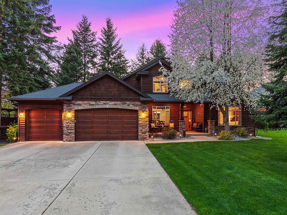 Rare Gem at the Base of Canfield Mountain! Privately nestled in a quiet cul-de-sac on nearly half an acre, this luxurious 4 bed, 3.5 bath Craftsman is one of Copper Ridge's most coveted homes. Thoughtfully designed with upscale Northwest finishes Knotty Alder cabinetry, granite, tile, smart storage design throughout and vaulted ceilings. Comfortable main-level living w/open & bright kitchen, floor to ceiling stone fireplace, formal dining room, spacious primary suite offering stunning mountain views, a four piece ensuite w/jetted tub, walk-in tile shower, private water closet, & custom walk in closet. Each guest suite features an ensuite bathroom, & walk-in closet w/built-ins. Outdoor living here is unmatched w/mature landscaping, new garden lighting, a welcoming front porch, fire pit, and an expansive back deck perfect for unforgettable gatherings. Recent upgrades include brand new carpeting, new furnace, A/C, hot water heater, & newly refinished & stained hardwood garage doors. Fantastic oversized 3-car garage w/work bench area & epoxy floors adds ease and elegance. A truly rare opportunity in a breathtaking mountain setting, homes like this don't come along often. Make it yours!