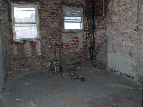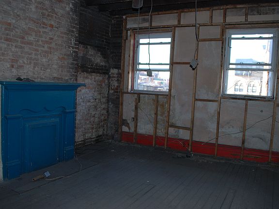 The messy part is already done! Gutted brick row house with tons of exposed brick in the interior.. living room, kitchen, 2 bedrooms (2nd bedroom was the finished attic), 1 full bath, basement with exterior access, small fenced yard/lot. Backs to a vacant lot. Lower level can be finished and a full bath added... portion of the floor has been dug up for plumbing replacement, windows were replaced at one time, new hot water tank in the box, newer furnace (not currently hooked up), electric panel and electric were updated at one time, some new plumbing to kitchen and bathroom. Original mantle in the master bedroom, attic area can have cathedral ceiling with exposed beams... awesome look! Great opportunity to reconfigure and start fresh.