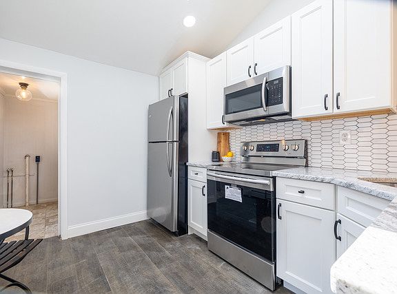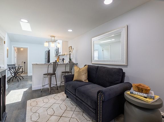 Completely remodeled! This home is an incredibly charming, beautifully finished 1-bedroom cottage. The first floor enjoys a completely open-concept layout with 2 front windows for good natural light, and lines of site straight through the back of the home. The kitchen is quite breathtaking with white granite countertops, tile backsplash, white cabinets and stainless steel appliances including a built-in microwave. A brand new large washer and dryer has been added. Every design element is sophisticated and modern. Behind the kitchen, there is a full bathroom which features beautiful wall tile with a lovely listel accent, as well as a ceramic tile floor. Upstairs, the bedroom features brand new carpeting, and it has windows on 2 sides for excellent light. It is quite spacious, and you could easily dedicate a portion of it to use as a home office. Additionally, a modern full closet has been built for the room with additional storage. There is also a very quaint, fenced backyard so you can enjoy your own personal outdoor living space, and there is a partial, unfinished basement with access from the exterior, which provides good storage. Plus, this home also has one personal parking spot. A unique location, 519 1/2 E Barnard St sits behind the main line of properties on Barnard St and offers an added sense of privacy from the road. You'll also be within a couple of blocks from Market St and the Boro's shops & restaurants. Walk to dining, festivals, boutiques, and parks. This charming home is beautifully finished and ready for you to drop your bags and make yourself at home. Inquire today! Renter is responsible for water and electric. Last month's rent due at signing. No smoking allowed. No pets. Renters insurance required.