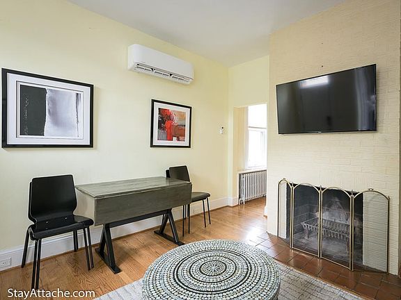 All utilities are included in the monthly rent + a private space for parking at the back of the property. Fully furnished 2 story, 2 bedroom, 1 bathroom row house in Capitol Hill. The living room has a brick fireplace, and hardwood floors. A gas stove, stainless steel appliances, granite countertops. The unit has a private deck off the back of the house. Eastern Market metro is just three blocks away, which is approximately a 5-minute walk. Plus, the Navy Yard is 6 blocks away. The property is just 2 blocks from Barracks Row's Main Street retail corridor, which includes Rose's Luxury, among a vibrant group of restaurants, bars, and other retail. The Shakespeare Theater Company relocated to 8th Street, bringing acclaimed performing arts to the area. Several parks are walking distance, including Marion Park, which is 1/2 block north. Located walking distance to grocers Whole Foods, Harris Teeter, Yes Organic Market, Safeway, and Whole Foods. Walk south to visit Washington Nationals Park, as well as the burgeoning SW and SE waterfront developments. Reagan National Airport is less than a 10-minute drive. If you have your own furniture and do not need the house furnished, please let us know. Utilities included. Private parking space for 1 car at the back of the property. No pet and no smoking. The unit is completely furnished. If you do not want to rent it furnished, please contact us and let us know.