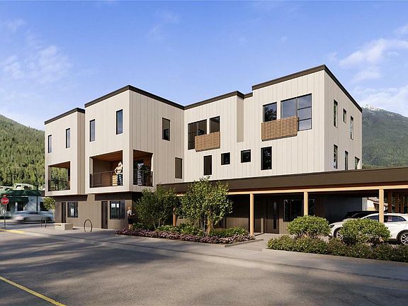 This is a very unique Revelstoke opportunity to purchase a new townhome built to standards that are rarely seen in the area. Located right in the heart of historic Revelstoke's downtown core this home is walking distance to shopping, restaurants and Revelstoke Mountain Resort shuttle pick-up stops. Extremely well and thoughtfully designed, this 2 bedroom plus den home offers 9' ceilings, generous balconies, exposed beams, covered parking, and privacy. The styled open concept interiors offer custom millwork throughout, high efficiency heat pumps for both heating & A/C, the latest in wall mounted recessed electric fireplaces, generous LED pot lighting and windows that maximize natural daylight. Directly off of the living area is a significantly large west facing deck large enough for an optional hot-tub. Sleek, flat panel custom millwork cabinets, generous countertops, tiled backsplashes, and LG stainless appliances make for a kitchen that is easy to entertain at with it's chef's counter. This home is currently in the construction phase and is scheduled for a Spring 2025 completion but now is the time to place your deposit!