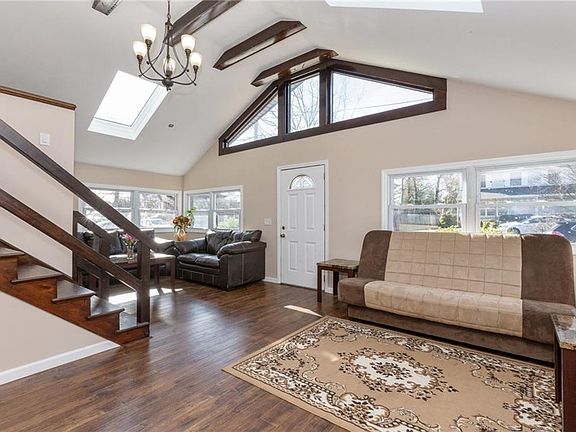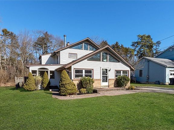 BACK ON THE MARKET!! UNIQUE 4/5 bedroom, 2 bath DOUBLE A FRAME CHALET style home!!! This one of a kind rustic home features many spacious rooms!! Living room with a woodburning stove and skylight, den with skylight, large eat-in kitchen, bright & cheerful dining room leads to butler pantry and full bath!!! Upstairs Master bedroom with walk-in closet along with 2 more bedrooms and full bath. 1st floor has a bedroom and a possible 5th bedroom when adding a privacy door. Huge laundry room, leads to large deck and oversized shed. Backs up to woods. Brick paver walkway leads to front door entrance. Gas heat and central air! Dead end street. Minutes from GSP, Reservoir and beach. Great for commuters!!!