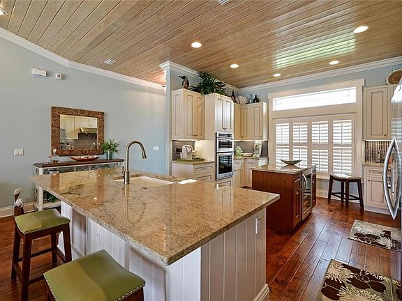 • Interior Features: Ceiling Fans(s), High Ceiling(s), Living Room/Dining Room Combo, Master Bedroom Downstairs, Split Bedroom, Vaulted Ceiling(s), Crown Molding, Walk-In Closet(s), Window Treatments, Open Floorplan, Furnished, Solid Wood Cabinets, Stone Counters, In Wall Pest System, Thermostat