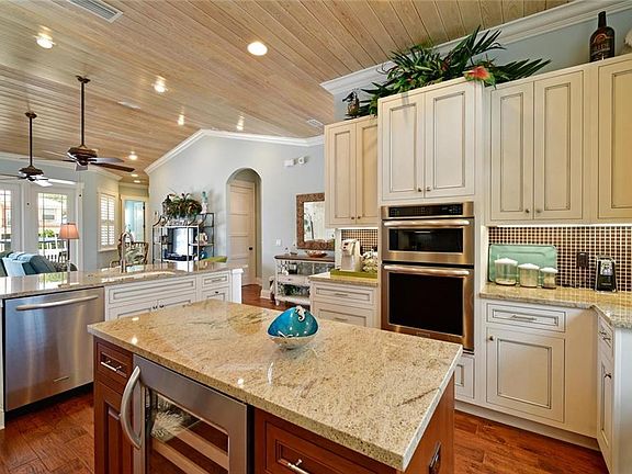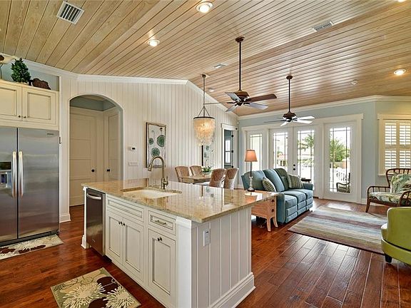 Move right in to this beautiful, open floor plan, canal home of 3 bedrooms and 2-1/2 bathrooms that was recently built in 2013 with everything you need to enjoy the easy going island life. Meticulously constructed by one of the island's premier builders, the split plan home features a bonus room currently used as a tackle room that opens to the dock but it can also be used as a den or office. And, the half bath also serves as a direct access pool bath. The travertine tiled outdoor living space is designed for relaxed and memorable good times with a heated pool, outdoor shower and a gas fire pit in a cozy gazebo roomy enough for seating and a grill. The U-shaped dock can accommodate a 29' boat and has a 10,000 lb remote controlled lift, a cleaning table and automated lights. Extra storage cabinets are built into the 2 car garage which has a side entrance that could be used for a golf cart. This comfortable home is being sold furnished with the exception of some artwork and personal items. From the foam insulated roof to the composite material exterior decking and the security system with app monitored cameras, this home was built with an eye to efficiency, ease of maintenance and peace of mind. Be sure to ask your Realtor for the extensive list of home upgrades and special features too numerous to mention here. If you are looking for an exceptional island canal home, this move-in ready home is a must see. Call today for a private showing.