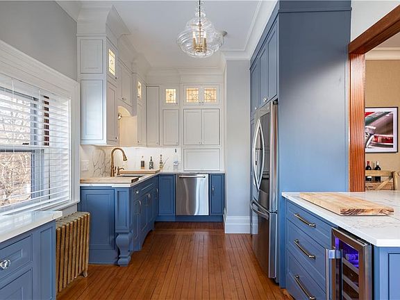 The Belmead Estate at 519 Bellevue Avenue was built in 1895 and sits on pristine 2.9 acres. Designed by Bruce Price, it still reflects the grandeur of Newport’s Gilded Age with Penthouse unit 3N fully and tastefully renovated and restored. 3 bedrooms, 2 baths + in-home laundry, large living room w/custom built ins, chef's kitchen yet still maintains much of its classic architectural details throughout. A year plus renovation completed recently and done so to protect and showcase period details while offering all the modern conveniences of today's living. Central Air Conditioning, 36' Italian induction range, wine fridge, quartz counters and backsplash, inset cabinets and the list goes on and on. Bathrooms fully renovated, a feature floor to ceiling paneled mahogany wall was designed, entryway wrapped in shiplap and the entire unit has high end fixtures. Open living concept with high ceilings is perfect for entertaining large groups. Walking distance to the mansions and events; Newport Flower Show, Newport Food Festival, Galas as well as the Audrain Newport Concours d'Elegance events. Note the large abutting parcel is part of Belmead to enjoy, for pets, relaxing, playing games. 2 dedicated off street parking spots with lots of room for guest parking. A grand entry foyer greets guests upon entrance and there is no better location in town; Salve Regina University located across the street, a 5 min walk to the "Cliffwalk" and partial water views from the master bedroom.
