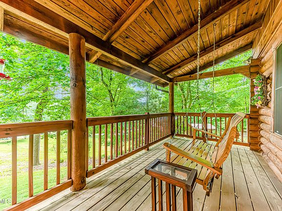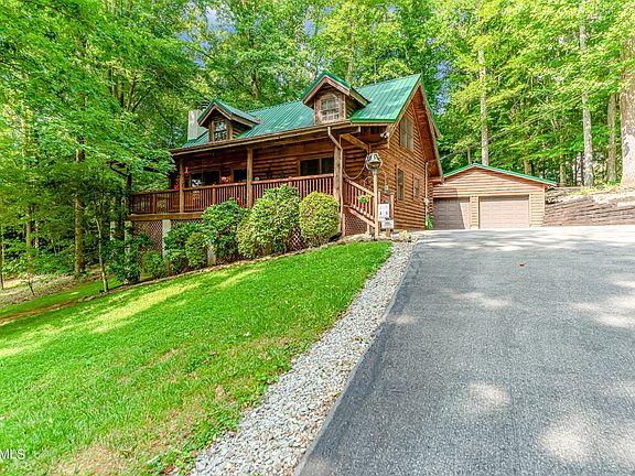 OUTSTANDING LOG CABIN with 8'' treated, interlocking, white pine logs! 2-Story BASEMENT perched on a tranquil, wooded .6 Acre Lot with a 24' x 28' DETACHED MATCHING GARAGE with 2 insulated doors, cabinets, work lights, peg board, plumbed for air compressor & storage above! House has 3 Bedrooms (Master Suite on Main and 2nd Floor + Loft with Closet being used as a bedroom) + 2.5 Baths + FULL UNFINISHED WALKOUT, PLUMBED BASEMENT! All exposed beams and logs on interior! Hardwood Floors! Kitchen has a NON-glued vinyl floor floating on a wood floor beneath. Soaring Great Room with Stone Woodburning Fireplace & a 10' Christmas tree to go with it! Stainless Appliances & Large Dining Space in Kitchen flowing out to Screened Porch with Electricity! Laundry on Main! Handmade doors with antique latches! Metal Roof is 2 yrs! Heat Pump & Furnace are NEW! Unmonitored Security System with Door Sensors & Glass Shatter Sensors. 5 miles to I-75. Minutes to Sequoyah Marina, Stardust Marina, or Waterside Marina where you can enjoy the crystal clear waters of Norris!
