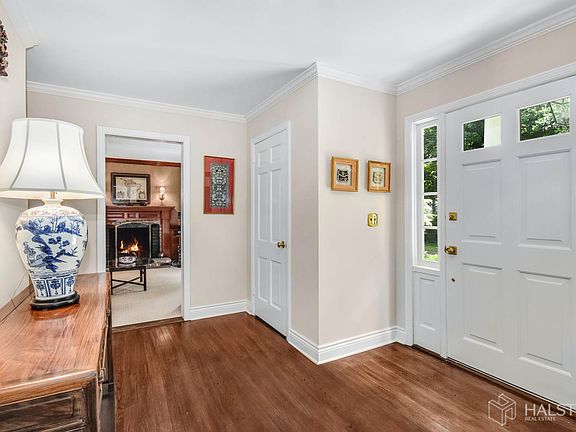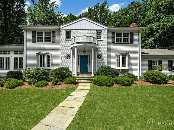 Life could not be easier in this impeccably maintained Colonial nestled down a private lane on 2 level acres surrounded by beautiful gardens and expansive yard. Experience nature while enjoying the charming stone patio and fireplace. The majestic backyard has plenty of room to play or add a pool. Airy and bright inside, this home offers plenty of space for formal and casual occasions. The spectacular sun room has a 9 ft ceiling, panoramic views through three walls of tandem Marvin windows with transoms above, a wet bar and cozy fireplace. There are 2 more fireplaces in the spacious living room and family room /office with custom wainscoting. The updated kitchen has quartz counters and plenty of storage. Four spacious bedrooms on the 2nd floor have ample closet space. Beautiful hardwood floors finished in dark walnut throughout. New windows and automatic generator. Lower level can easily be finished with endless possibilities.