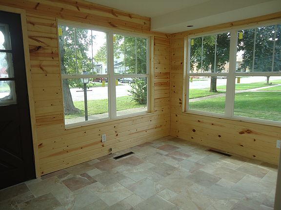 Totally remodeled brick home with some really fun finishes. Who says affordable homes need to be boring? Front porch entrance to this home features tile floor, pine siding finish and large windows. The great-room concept living space features a real wood burning fireplace, wood wrapped beams, beautifully tiled dining area and kitchen that also includes all appliances and a dramatic vaulted ceiling. The remodeled bath floor is tiled as well. New carpet in the bedrooms and fresh paint throughout make this home move-in ready. The attic has additional room that could be finished off to provide more usable space. There is a basement for storage and utilities, as well as an alley load garage. Located near the post office, library and downtown shopping, this home's location couldn't be more convenient.