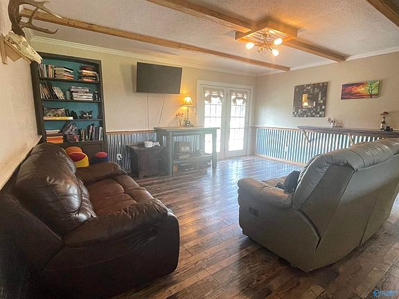 This full brick ranch style home has 3 beds/2 baths and a split & semi-open floor plan. The master bedroom has a brick feature wall and custom woodworking giving it a cozy feel. The attached master bath includes a place for laundry appliances. Custom woodwork and tin accents continue through the home's common living areas. Sitting on on acre of land it has great front and back yard space. A large deck on the back is shaded by mature oak trees and leads to a nice sized back yard. Two small sheds at the back of the property will convey with the sale. Storm shelter is operational.