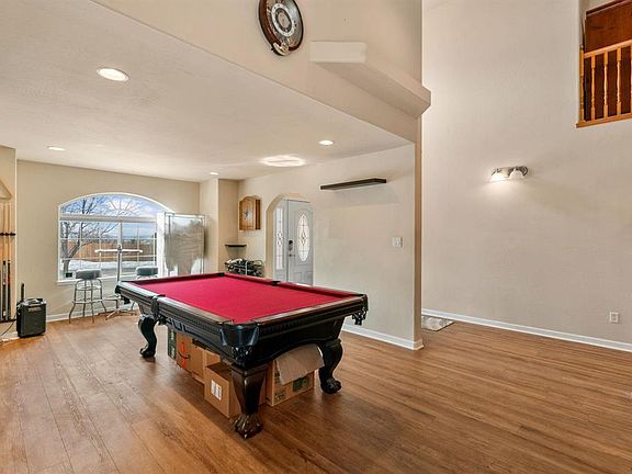 Located in town Bayfield towards the top of the Dove Ranch Subdivision this well appointed 2 story stucco home offers just over 2200 square feet of living space with 4 Bedrooms and 2.5 baths. Upon entering you will notice the hardwood floors that are throughout the common area in the generous foyer you are immediately taken in by the two story staircase (with storage under the stairs). To the right of the entry is a formal living room/dining room combination with solid surface flooring that leads you directly into the kitchen that offers hardwood floors, granite countertops, breakfast nook area, stainless steel appliances, a large island with bar seating and a plenty of cabinet storage and counter space. The open concept allows for ease of conversation between the kitchen and family room. The back yard is accessed from a sliding glass door in this area. The back yard is truly a site to be seen and an oasis that offers a covered back patio area, custom built grill, water feature, large brick paver patio with gazebo cover complete with a sand pit for hanging chairs and all patio furniture to enjoy those Colorado evenings! Mature landscaping as well as a shed complete out the outside area. Back in the home just off the family room is the primary bedroom and en suite bath that has been recently remodeled to include an oversized beautiful full tile 2 headed shower, dual vanity sinks and a large custom closet. Rounding out this level is a powder room and laundry room that leads you to the attached 2 car garage. Upstairs you will 3 additional bedrooms with ample closet space as well as a shared bath. Please be sure to check out the additional pictures from the owner of the back yard in full bloom. Please note this property also has central AC
