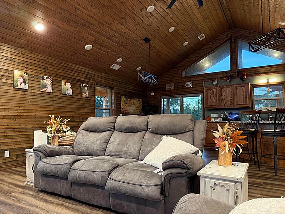 Stunning Country Living Home on 4.68 Acres with Generator, Outbuildings & RV Hookups! Built in 2021, this beautiful 3-bedroom, 2-bath cedar home offers 1,848 square feet of well-designed living space on 4.68 acres. Featuring an open-concept floor plan, the home is filled with natural light and provides a warm, inviting atmosphere throughout. Enjoy outdoor living on the full wrap-around porch, perfect for relaxing, entertaining, or taking in the peaceful surroundings. The home is all-electric with a propane backup and is equipped with a 24KW Generac whole-house generator, providing comfort and reliability year-round. The property is partially fenced for livestock and includes multiple versatile outbuildings. A 420 sq ft enclosed metal shed offers ample storage or workspace, while the attached 700 sq ft covered RV bay adds exceptional functionality. Additionally, a 120 sq ft finished wood-frame shed includes water, electric, septic, and a 100-amp RV hookup—ideal for guests, hobbies, or extended stays. This property offers the perfect blend of modern construction, rural charm, and practical amenities—an excellent opportunity for those seeking space, self-sufficiency, comfort!!