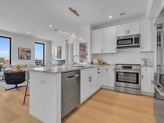 Welcome home to Vantage Point - a collection of 30 well appointed homes in the heart of South Boston outfitted in the finest finishes. Unit 407 boasts 1 large bedroom and 1 full bathroom which is dripping in marble, designer lighting and plumbing fixtures. This South facing home has floor to ceiling windows allowing light to pour in. Open concept kitchen and living room lead out to your private deck waiting to host guests. The kitchen boasts two tone shaker cabinets, marble counters and Bosch stainless steel appliances. Plethora of closet space is found throughout this unit. Wide plank oak flooring, central heat/AC. Ideal South Boston location! Close to everything - bars, restaurants, coffee shops, retail, Seaport, public transportation. Professionally manage and 1 GARAGE parking space included.