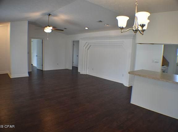 Highly sought after COVE area. Half of a duplex with a spacious open floor plan. Great room has vaulted ceiling with decorative molding and a tiered wall space with recessed lighting. Freshly painted inside and move-in ready. New easy care vinyl plank flooring. Ceiling fans, Laundry room leads out to deck and fully fenced back yard. New metal roof, well equipped kitchen with almost new appliances. Baths are tiled. Excellent location and convenient to downtown and all of Panama City. Not far from Tyndall, Callaway, Lynn Haven or the Navy Base. In Flood Zone X,