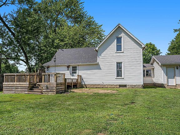 Charming & colorful home with multiple outdoor living spaces & absolutely massive enclosed back yard—just needs a bit of TLC! Nice in town location with a large city lot as well as an extra lot behind the house which is entirely fenced in, this 3 bedroom, 1 bath home has lots of potential. Nestled in a quiet area not far from IN-14, this home has its own unique appeal it with a classic white exterior & a big inviting covered front porch with plenty of room to relax in the shade. Built in 1920, this is your chance to own a piece of history & fix it up to your own personal style & taste. Front door opens to dining room/flex space serving as the central hub that all other rooms branch off from. A ceiling fan keeps air flowing, steps lead upstairs, kitchen through arched entryway, bath, main floor bedroom, mudroom & back door & wide entry to main living all link here. Main living room makes a bold statement with retro candle chandeliers, red walls, wood flooring & big picture window allowing lots of natural light. At the opposite end is a breezeway to the attached 1 car garage with built-in shelving. Kitchen has abundant cabinetry & counter space with gas & electric oven hood up & large pantry walk-in. Main floor bath has beadboard walls, built-in shelving, hard surface vanity & tub/shower combo; laundry room has new vinyl flooring. One good sized main floor bedroom with walk-in closet. Upstairs are 2 more cozy bedrooms with angular ceilings & fans. There’s also a bonus room which could be used as a play room, 4th bedroom or dry storage & finished attic with power stairs. Out back is sure to be a popular gathering point & is the true star of the home. Generous raised wood deck has ample room for sun bathing, dining al fresco, or simply enjoying the peace of outdoors. Garage also has a backdoor that opens to back yard. Raised flower bed or built-in sand box, lean-to, free-standing shed next to arbor has electricity nearby & swing set stays. Yard stretches for what seems like miles all the way back to Akron water tower & yet is completely surrounded by 6’ privacy fence making it feel like your own personal oasis. Room for all kinds of activities with so much possibility. Conveniently located close to local amenities such as dining, local eateries, parks & school. Only about 15 minutes to Rochester & North Manchester, approx 20 minutes to both Warsaw & Wabash for additional shopping & grocery needs. Could this be what you've been looking for? Take action today!