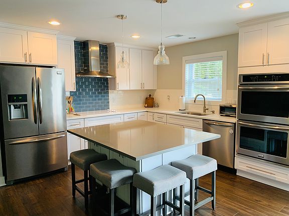 Fully Renovated Brick Ranch in the Heart of Mooresville! 4 bedroom, 2.5 bath home completely renovated from the studs in 2016 with new flooring, windows, HVAC, electrical, and plumbing installed (roof replaced in 2012). Open concept living, kitchen, and dining area separates Master Suite from 3 guest bedrooms. Kitchen features white shaker cabinetry, quartz countertops, stainless steel Frigidaire Gallery appliances (double oven!), and spacious island. Master Suite includes en-suite bathroom with his/hers vanities and walk-in closet. Spectacular custom finishes throughout! Large corner lot with huge fenced in yard with fabulous deck and fire pit. Plenty of space for a garage, carport, or workshop. Located in a quiet neighborhood walking distance to schools and parks, close to downtown Mooresville's shops and restaurants. Great opportunity for modern living in MGSD with no HOA!