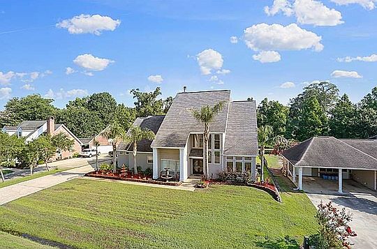 Architecturally stunning! Wall of windows overlooking the golf course. 5 bdrms w/game room/playroom. Granite countertops in the kitchen. Double sided gas log fireplace from the den to the breakfast room. Custom built-in closets throughout. 2 car attached garage with detached carport/boat storage and wood deck. Security system, fresh landscaping, irrigation system and fixtures.