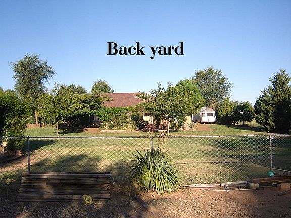 This beautiful Mediterranean-style home is situated on a cul de sac on 1 acre. This 3 bedroom, 2 bath, 2 car garage 1584 sf home was built in 2003 featuring an open floor plan, vaulted ceilings and neutral colors and ceiling fans throughout. The bright airy kitchen features a breakfast nook with bay windows, breakfast bar, wood cabinets and a walk in pantry. Master suite with doors leading out to the patio, walk in closet, separate shower and jetted tub, dual sinks. The backyard is a gardeners/entertainers dream! Featuring a spanish walled patio with Kiva fireplace, a pergola, and a horseshoe pit. Room for ALL the toys in the equipment yard with shed and separate access. This home has a high producing well AND is connected to City water! The yard includes front and back outdoor faucets,