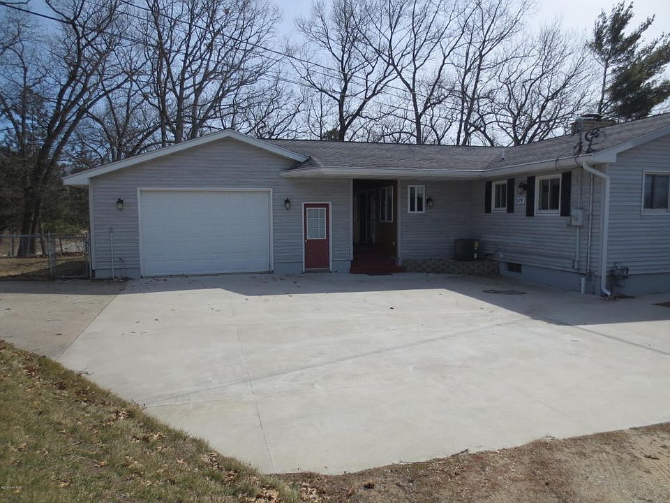 Please enjoy the 100 ft of sandy beach and "million dollar" views of all sports Wolf Lake from your updated walkout ranch home. Located near Wolf Lake campground, you may witness all that nature has to offer with eagles and assorted wildlife as this home has windows galore. Since 2011, there are substantial upgrades including, installation of retaining walls, 60 ft aluminum dock, gutters, upgraded sprinkling system, and additional shed, cement pad driveway, and new well (2017). On the interior,some of the upgrades include fresh paint and newer floor coverings, newer furnace, water heater, and air conditioning system, re-modeled bath, installation of vertical blinds, updated electrical, etc. Some additional highlights include main floor laundry, recessed lighting, multi-tiered decks