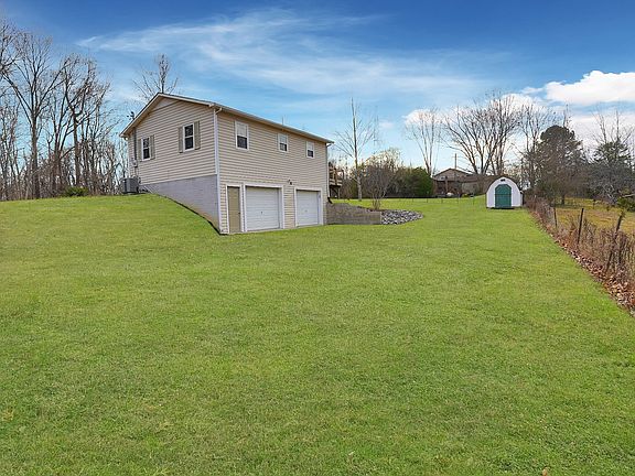 Look at this Dollhouse with an open floor plan, kitchen allowing tile flooring, ample cabinet space w/side pantry and walk out door to the deck. Composite decking is always a plus. Find the 2 bedroom-1 bath plan a perfect down size or getaway property with a full heated/cooled basement being 2 bay garage and walk out door. Upgrades include all replacement windows, roof, central unit, water heater, concrete drive and more. Home is situated on an open 0.40 acre lot just minutes to Barkley Lake and launching or Land Between the Lakes. Nice storage building in the back lawn which has fencing on one side and along the back. The heated/cooled basement garage offers much potential with taller block height for finishing out with ceiling.