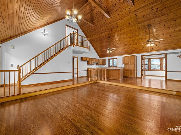 Can't you just picture yourself sitting on the porch swing on those warm summer evenings on this spacious front porch on Hickory Circle? Just a short block from the waters edge. First time on the market in 25 years. We are proud to present this charming 3 bedroom and 3 full bath cape cod home. Step thru the front door and you can't help but appreciate the large great room with soaring wood cathedral ceilings accented by the wood beams. And the beautiful newly refinished hardwood floors. The perfect sized sunken living room warmed by the gas fireplace. Overlooking is the kitchen with refinished cabinets, new countertops and sink. And the sunroom just off the breakfast area could be additional dining or family room space. The 1st floor features 2 ample sized bedrooms with large closets and a nice full bath. And up the gorgeous oak stairway is the Master Suite boasting a second floor balcony. All the bedrooms have new carpet. On the lower level, most of the work and expense is completed. Just a little trim and flooring, and you have a huge family room, a second kitchen, a full bath, and two spare rooms for exercise, office, craft rooms, etc. And still plenty of storage for your active lifestyle. We are also have a oversized 2 car garage that measures approx. 24'X30'. There is a pull down stairs that leads to the floored attic offering a huge amount of storage. There is a second furnace in the garage attic to heat that, it just needs some minor installation work to complete it, and next winter you will have a warm and comfy garage. On the outside, there is huge deck off the sunroom overlooking one of the largest lots at Lake Holiday, approx. .54 of an acre. Such a nice looking home inside and outside, why buy a boring looking home, when you have one like this as an option. And don't forget all Lake Holiday has too offer, excellent fishing, boating, swimming, clubs and more. Plus you are in the excellent Somonauk School District. Great home, excellent location and lot, awesome schools, this one is a win win! This is an Estate sale and as such is being sold in as is condition.