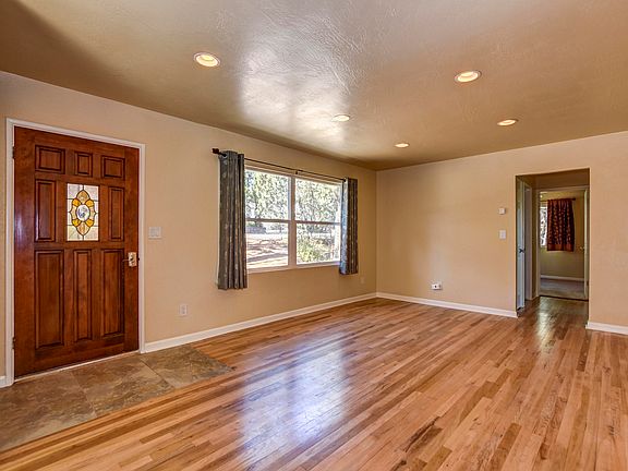 Cute vintage home in central Prescott within walking distance to Downtown and close to the national forest! This roomy home has lots of indoor and outdoor spaces to enjoy! Walk in to original oak flooring throughout the living room and 2 of the 3 upper bedrooms. Tiled full bath. Step down to a charming family or formal dining room with built-in shelving and a brick wood-burning fireplace. This home has newer vinyl double paned windows throughout, and a nice sliding patio door here to a south facing, sunny patio. Kitchen features tiled floors, stainless appliances, and dining nook. Office and large laundry room too, w/washer & dryer included. Walk downstairs to a huge master bedroom/OR? with 3/4 bath and large walk-in closet. 3 storage sheds. Surveyed. Freshly painted interior