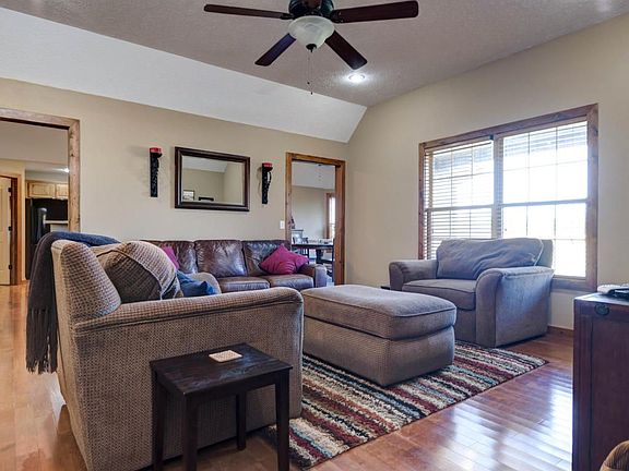 Prepared to be impressed! This home is immaculate with lots of upgrades and improvements. The living room & hearthroom have beautiful hardwood floors, a wonderful open kitchen/hearthroom, knotty pine cabinets, desk work area, good sized pantry, newer carpet in all 3 bedrooms, knotty pine trim throughout the home, barn style doors, vaulted ceilings, all new paint throughout the home, new AC, 5 yr old furnace, water filter, attic thermostat controlled heat vent, new privacy fence overlooking country views, and a covered patio. This home was been very well maintained with nice landscaping and a manicured yard. Come see this lovely home today!