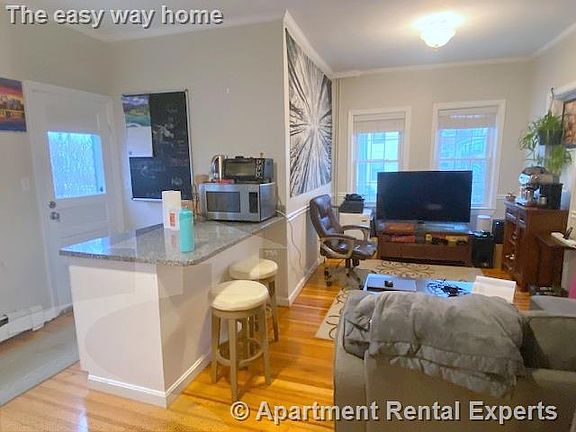 Fantastic deal for a 4 BR 2 Bath apartment very close to Magoun Square and walkable to Davis Square. 2 BRs are upstairs and 2 downstairs with a full bathroom on each floor. One of the upstairs bedrooms is as big as 2 normal sized bedroom with a gigantic closet; 2nd bedroom on upper floor is big with big closet, and there is a super nice bathroom on this floor. Kitchen is modern with DW and is open concept with the living room. There is a second living room in the basement + two additional bedrooms and a full bath. The basement bedrooms are good sized with good light but are smaller than the rooms upstairs. Very nice patio with entrance to the basement area and 2 off street parking spots are included. Great value and tons of common space! Laundry is on the second floor landing and is a very nice laundry room with two washers and two driers for the building, and it is free! Unit will be completely repainted for 9/1/2021 occupancy. (Reference #177101) Owner pays for water and sewer 2 off street parking spots included