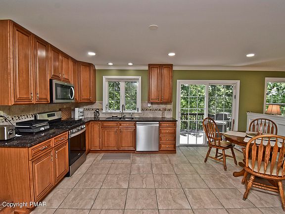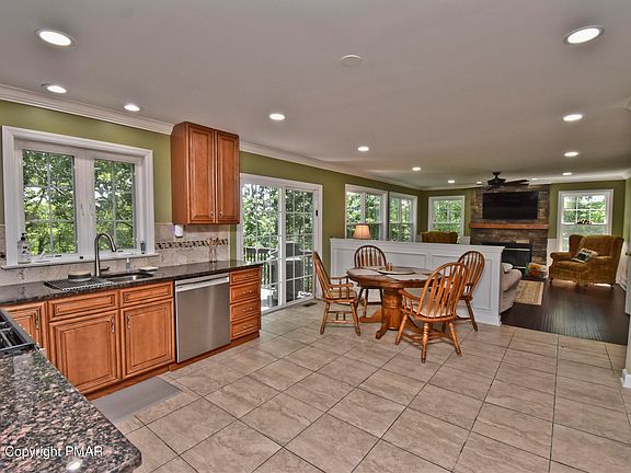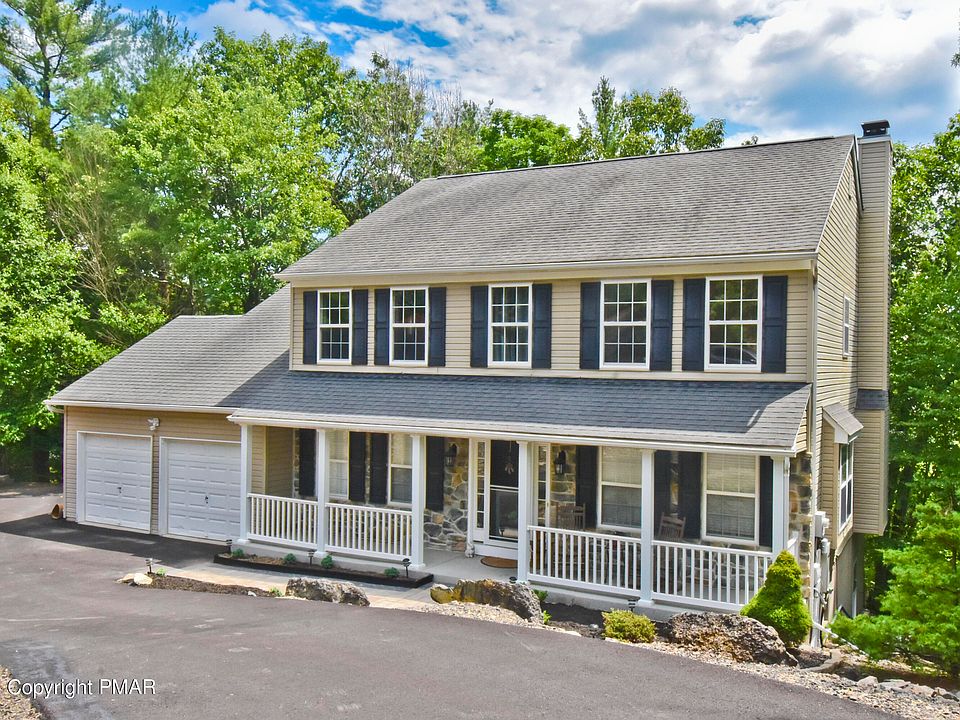 STUNNING 5bd/2.5ba Center Hall Colonial in the desirable CCP has been METICULOUSLY REMODELED over the past 2yrs. Overlooking the 4th hole, this golf community offers pools, tennis courts, & is close to shopping, attractions, & major highways. The SPACIOUS Eat-in Kitchen has ample cabinetry, newer SS appliances, granite counters, butler's pantry, & access to a PRIVATE deck w/ a MILLION-DOLLAR VIEW! The Family Room has a stone fireplace & hardwood floors that flow throughout. The main floor also has a Formal Living/Dining Room, half bth, & laundry. Upstairs boasts 4 LARGE bds, including a Primary Suite w/ a sitting room, WIC, & ensuite w/ a soaking tub. Finished LL is an ENTERTAINMENT PARADISE featuring a theater room w/ fireplace, bar, home office, & rec room w/ access to new paver patio. Additional features of this remarkable home include a 2-car garage, a covered front porch, & new HVAC system, hot water heater, & furnace. Don't miss the opportunity to own this exceptional property in the heart of the Poconos.
