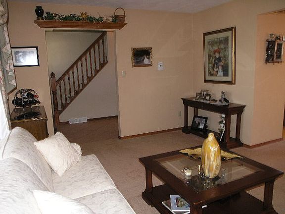 This is a very nicely updated 2 story 4 bedroom, 2.5 bath home with a kitchen that is just fabulous with Cambria countertops, maple cabinets with crown molding, under cabinet lighting, recessed lighting, breakfast bar and a beautiful ceramic floors on the diagonal that extends into the foyer for a beautiful entrance. There is a large living room that opens to the formal dining room. There is also the option of having washer/dryer on the main level in the pantry as the hookups are still there. Current owners use the laundry hookup in the basement. There is also a nice family room on the main level with a brick wood burning fireplace and built in bookshelves on each side of the fireplace. The Family Room walks out to a huge patio, large flat yard with mature trees and nice shed with concrete floor. Upstairs you will find a large master suite with 2 closets (1 is walk in), updated master bath with granite vanity top, Hickory cabinets & ceramic floors. Finished garage has nice storage.