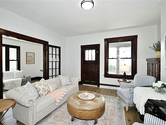 Old world charm meets modern amenities! Total transformation top to bottom. Fresh paint throughout & updated easy maintenance laminate floors throughout the main living space. Flexible floor plan that meets the needs of any household. Living room w/built ins, first floor family room/office w/gorgeous refinished french doors, formal dining room w/built ins & den/butlers pantry adjoining. BRAND NEW kitchen featuring white shaker cabinets, quartz counters, stone backsplash, fully equipped w/SS appliances & a mud room walking out to the table top back yard. The yard is fully fenced in w/direct access to the oversized 2 car detached garage w/firepit area. 2nd floor offers 3 ample BR's w/fresh new neutral carpeting. Primary has a walk in closet & 2nd closet perfect for shoes or accessories! New AC, recently serviced furnace plus a covered side porch for morning coffee/evening cocktails. Full bath gutted w/tile flooring & surround, trendy fixtures & vanity. Nothing to do but unpack & enjoy!