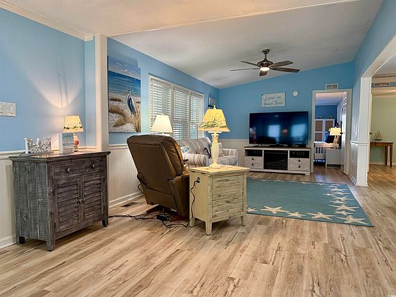 This absolutely beautifully updated home is situated on a corner lot in Oceanside Village, just east of 17. This home encompasses 3 bedrooms, 3 baths and a spacious open floor plan for family and friends to hang out and enjoy. Coastal colors throughout give you the look of comfort and relaxation. There are 2 master ensuites, one with a private porch off the back to enjoy amazing views of the lake and fountain. Updates include freshly painted exterior, added concrete for additional parking, all new ductwork, insulation and vapor barrier, newer stainless appliances, quartz counters, newer cabinets, lvt flooring, 2022 roof, 2020 HVAC, and much more. Enjoy this resort style setting where your amenities provide private beach front parking, indoor pool, outdoor pool, kids splashpad, hot tub, dog park, shuffleboard, tennis, pickle ball, bocce ball, playground, basketball, baseball field, fitness center and much more. Schedule your showing today!