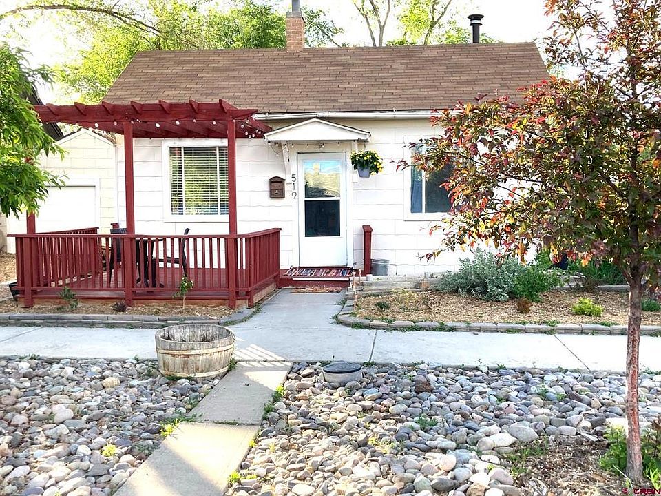 Come see this wonderful Montrose home that's located right in the heart of everything you love about Downtown Montrose. It's on full lot and includes a garage along its side for all of your goodies to enjoy all that Western Colorado has to offer. It's compact-only 704 square feet, but the single level layout allows for so many uses. The current owners have shown their love-and you'll see their special touches throughout the home. The front has a sweet deck for enjoying those beautiful Colorado evenings, and the back patio gets you out of the sun in those warmer midsummer days. As you enter the home you'll get that-'it grew' feeling! The living room is nicely sized and has a beautiful woodstove as you head into the kitchen. The main bedroom is to your left here, on the west side. The kitchen is wonderful-with recently refinished cabinets and a comfortable layout. The north side of the kitchen area has the second bedroom on the west and bathroom on the right. You'll absolutely adore the sun porch along the west side of the kitchen-where you have a simple step down to the laundry area or head out the back through the door on its north end. The yard is huge, and the large trees add some needed shade on summer days. The owner is a professional tree trimmer, and care has been taken to keep them healthy and safe. The back yard is huge-with lots of room for parking out back-room for your critters or room to play. This area of town encourages additional living spaces, so you may decide to add some form of home, shop or ADU. This is a fun one--one that will work for so many situations-your seasonal escape or year round home-buy it to help a person needing single level living-or maybe you just love bungalos and want to have a home situated in ideal SW Colorado location--move fast though-you'll love it!