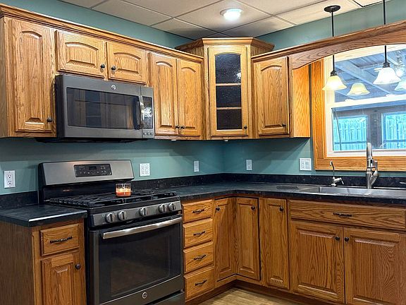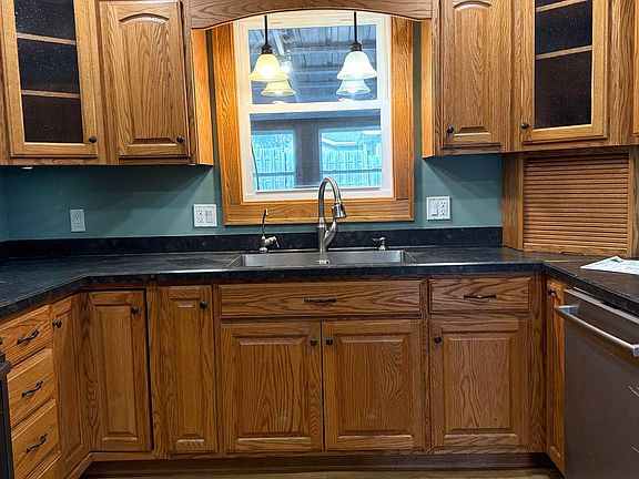 Step into this charming two-story home featuring beautiful oak kitchen cabinets paired with a full suite of GE appliances- perfect for both everyday cooking and entertaining. The hardwood floors add warmth and elegance throughout the main level (living area carpeted with hardwood underneath). Enjoy meals in the formal dining room complete with a bay window and cozy bench seat with storage. The sunroom, framed with French doors, offers a peaceful space to relax and enjoy a cup of coffee. A spacious living area showcases custom built-in oak cabinetry, adding both character and function. On the second floor you'll find your three bedrooms and full bathroom along with your front load LG washer and dryer for your convenience. The large covered screened in porch is sure to be the place to gather with friends to host BBQ's and enjoy those summer evenings and steps away outside is a firepit on your concrete patio to top it all off! The garage has plenty of room for 2+ vehicles and also has a bonus room for a workshop! Heat is boiler/radiator and works perfectly! A/C is by window units- 1 on the main and another in the master bedroom. Water softener is a rental from Blaine's in Cherokee. Water heater replaced in 2016. With a few minor fixes, this property would be the perfect starter home! Home is being sold AS-IS! Nonetheless, this home is full of inviting details and timeless craftsmanship you'll appreciate the moment you walk in!