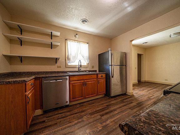 Charming 2 two story home located on a large corner lot in Grangeville Idaho. With nearly 2000 sq.ft, this home welcomes you with 4 bedrooms(2up/2dn), 2 baths(1up/1dn), and a spacious living room. The kitchen boasts attractive laminate countertops, stainless dishwasher, fridge, double oven, and pantry conveniently located off the kitchen. Sizeable mudroom has a multitude of uses including chest freezers, workshop, or even a hobby room. Enjoy the convenience of a dedicated laundry room located next to the mudroom. Upstairs features 2 generously sized bedrooms, a full bath w/ pocket door, and a substantially sized walk-in storage room. Adequate space to build your garage/shop or garden area. Lot can be easily fenced for the critters and kiddos. Central heating and AC.