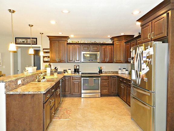 Appealing open floor plan! This spacious home offers 3 bdrms, 2 baths, + storage! Master suite has large walk in closet and double vanity. This home is located on a nicely landscaped lot with a walk-out basement to patio on lower level and deck off main floor. Gorgeous kitchen,like new interior & main fl laundry. Basement is approx 535 sq ft and could easily be finished.