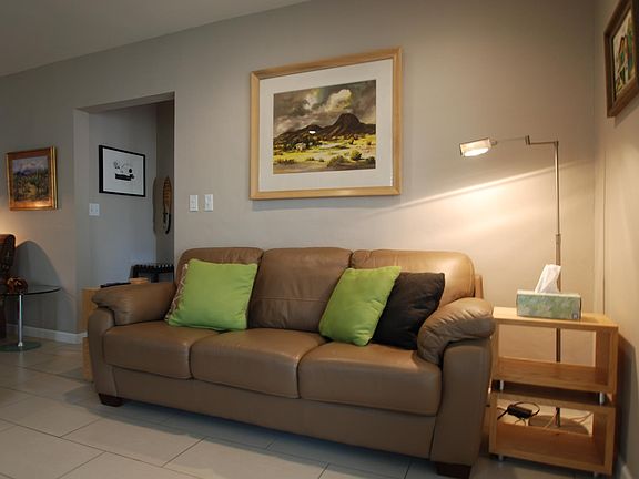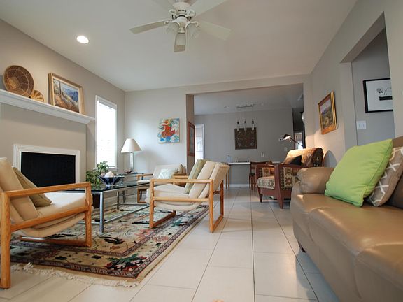 This lovely SAM HUGHES home is fully furnished with a complete kitchen, and included all linens. This light and art filled home is .5 miles E of UA and has enclosed yards, front and back, perfect for pets. There is a fountain and covered patio filled with mature plantings and citrus. The side covered patio has a grill. Newly updated home has a king in the Master bedroom, an adjacent bathroom w/deep soaking tub and rain shower, and dressing area. The two other bedrooms have queen beds. The second bathroom has a huge shower, easily accommodating a roll-in shower seat. The home has no steps, completely tiled for easy maintenance, AC and heat, overhead fans throughout, washer/dryer and landscaping maintenance included. The two car garage opens directly into the yard, and additional parking west of the garage. Sustainable practices and FREE EV CHARGING. All utilities and WIFi included. Landscaping maintenance provided. No smoking. Pet deposit.