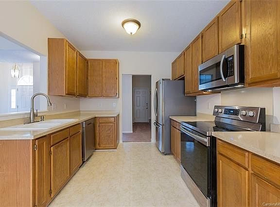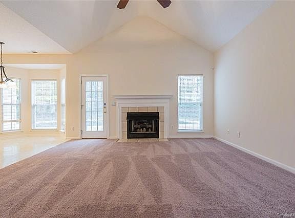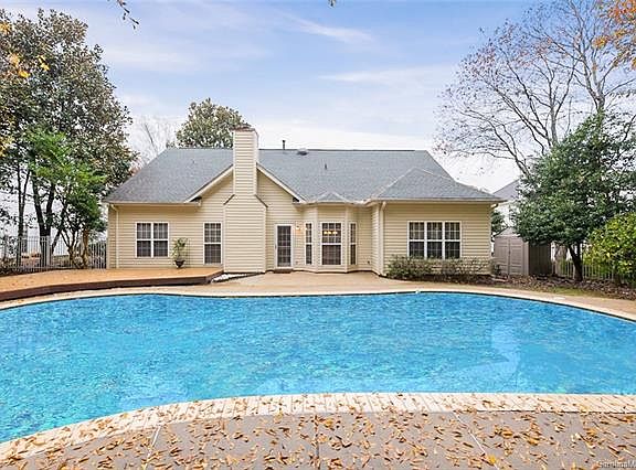 This Fort Mill one-story home offers an in-ground pool, a fireplace, stainless steel kitchen appliances, a master bath separate tub and shower with dual sinks, a deck, a patio, and a two-car garage. Upgraded features include new carpet throughout and new paint throughout.