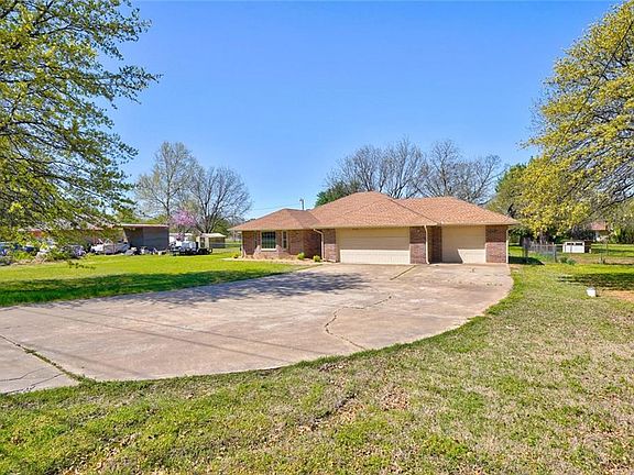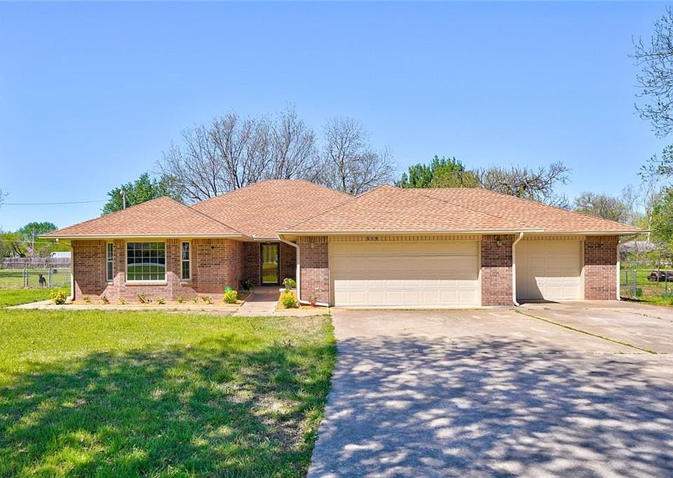 Many updates just completed. New flooring, new appliances, lighting and much more. Kitchen features beautiful wood cabinets, new quartz countertops with subway backsplash. There's a large pantry, new gas range and dishwasher, sink & faucet. Its adjoined by a generous dining area with bay window & window seat with storage. The living room is huge with a fireplace and new can lighting. There are newer double pane windows throughout. Inside utility with lots of storage. Oversized 3 car garage with work area. Master suite has a vaulted ceiling 2 sinks, 2 walk in closets and separate tub and shower. Roomy home on 2/3 acre near shopping, schools and, of course, Tinker. 8-10 person storm shelter plus outbuilding. Must see to appreciate. Its move in ready. Don't expect this one to last long!