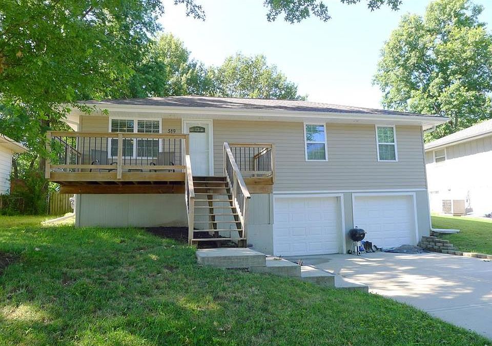 Great starter home in the NKC - Staley School District. Third bedroom in the basement can be used as a functional second living/entertaining area. Large storage room in the basement connecting to the garage. Newer flooring throughout the home. Roof, Water Heater and HVAC are all five years old. Nice sized decks on front and back of home great for get togethers.