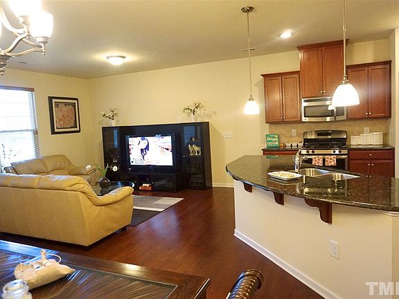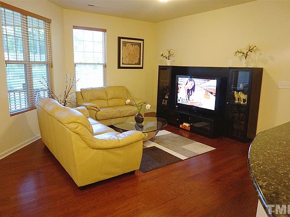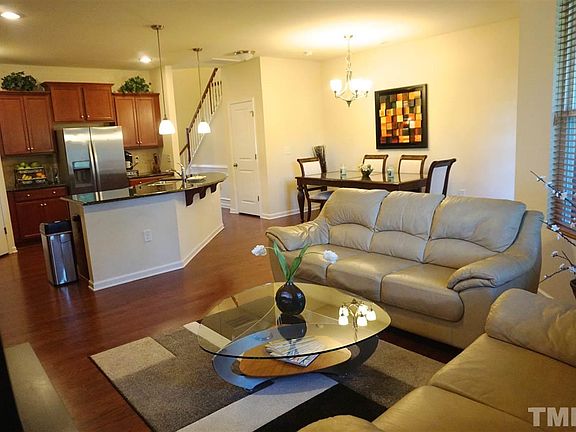 This lovely open 2 story townhome was build in 2014 has it all! Locate on a premium lot.The first floor features elegant wainscoting, first floor HWF, granite island, tile backsplash, SS appliances.Two large second floor bedrooms, each with its own bath and large walk-in closet as well as a spacious laundry room. Others nice features include a nice private screened porch facing wooded area, a garage,pool ,clubhouse and playground. Near shopping,restaurants,RTP & great schools. Come see for yourself!